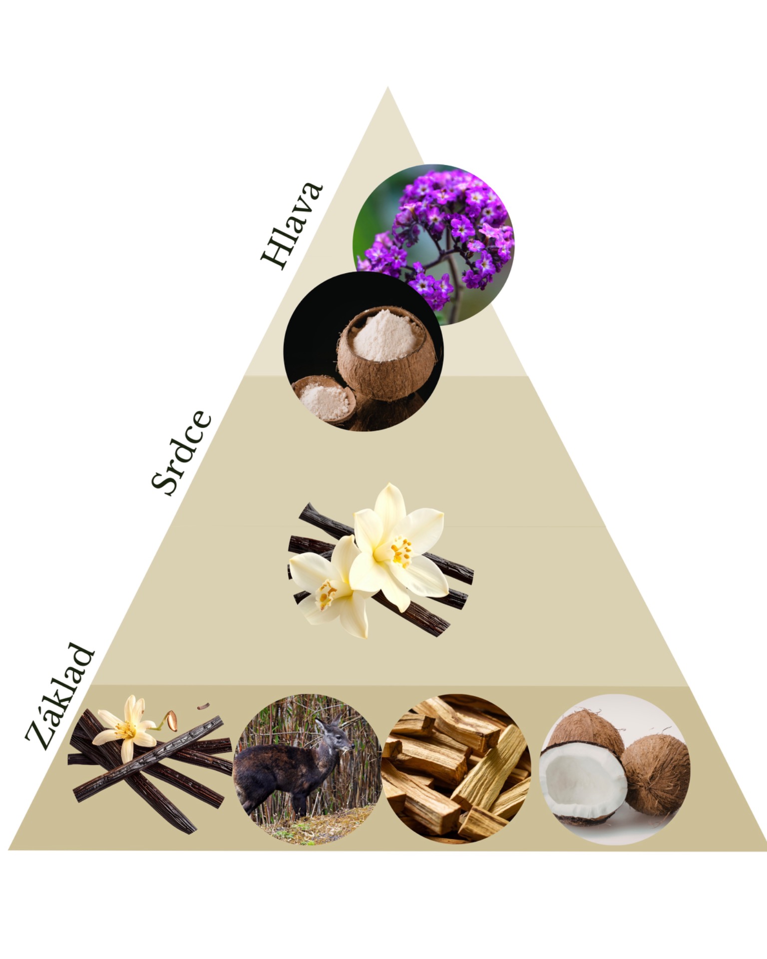 Základ: vanilka, pižmo, palo santo, laktony, kokos